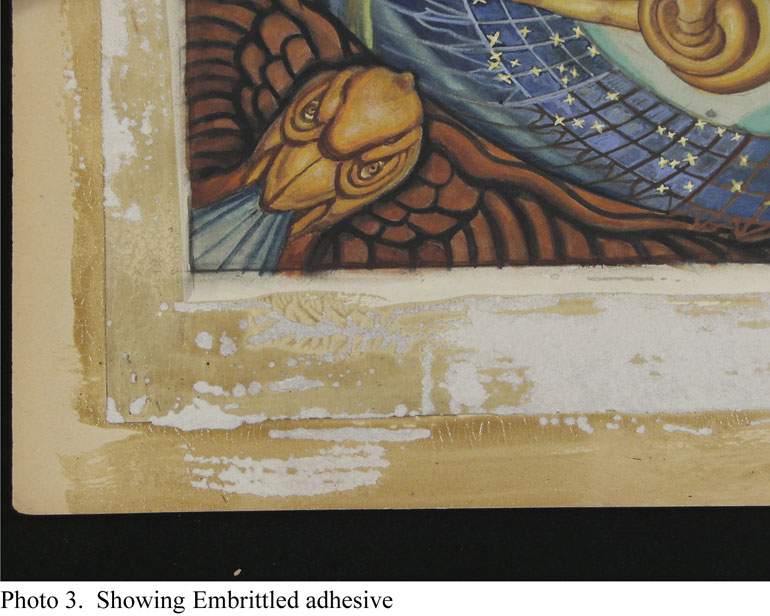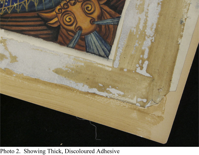 The thick paper overlays had also started to become discoloured and, upon testing, this paper was also found to contain acidic materials.